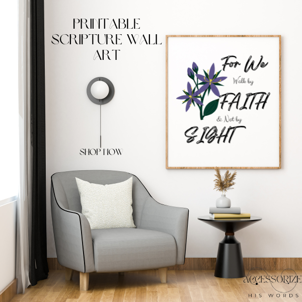 For We Walk by Faith Printable Bible Verse Wall Art